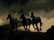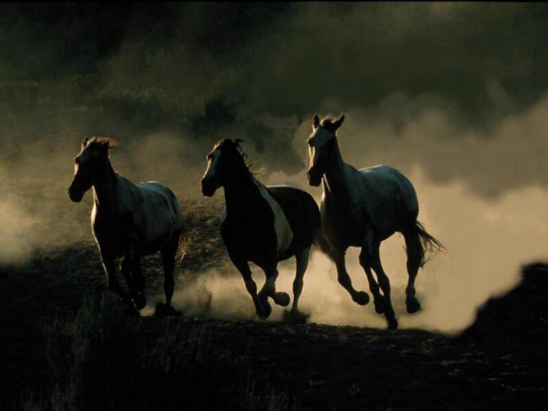 Horses running in night dust