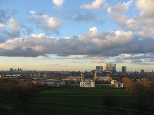 Canary Wharf from Greenwich park, London, UK