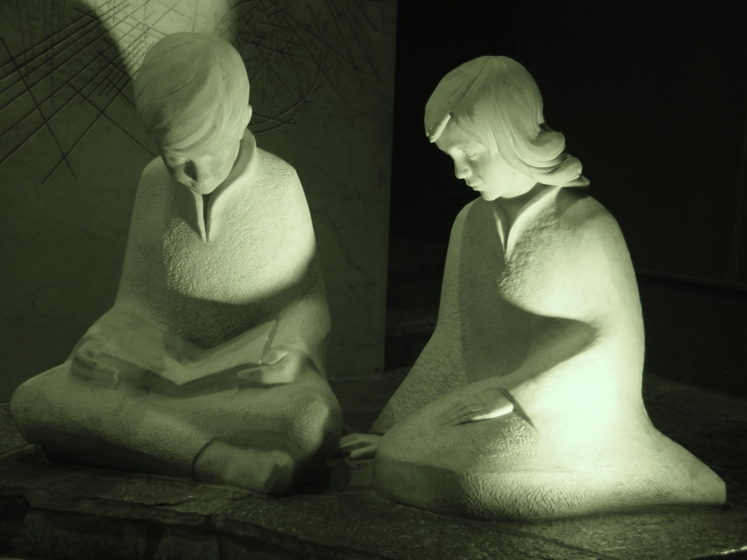 These two youngsters are eternally reading their bibles(?) inside the St. Patrick's Cathedral in New York.