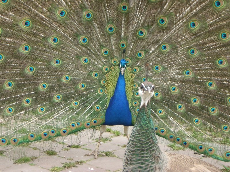 This poor peacock tried so hard to impress a female, but she paid little to no attention to him. Eventually, she just walked away and he put down his feathers, seemingly equally untouched by the event.
